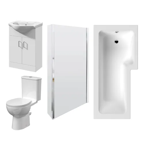 Right Hand Square Shower Bath 1700mm x 850mm, Bath Screen, 550mm Vanity, Pan and Cistern