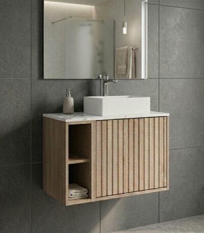 600 Cabinet with Fluted Door with White Basin – 580w x 500h x 389d